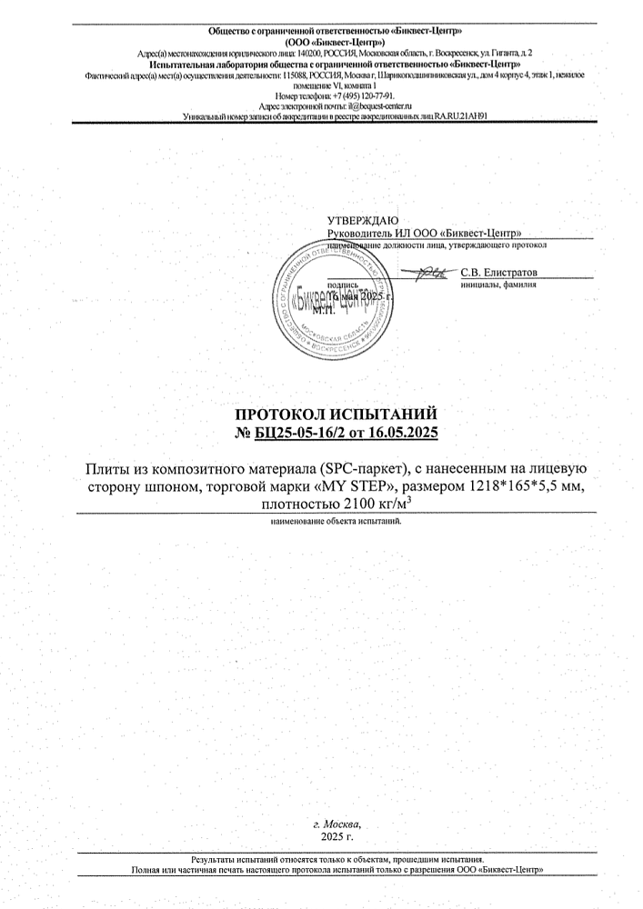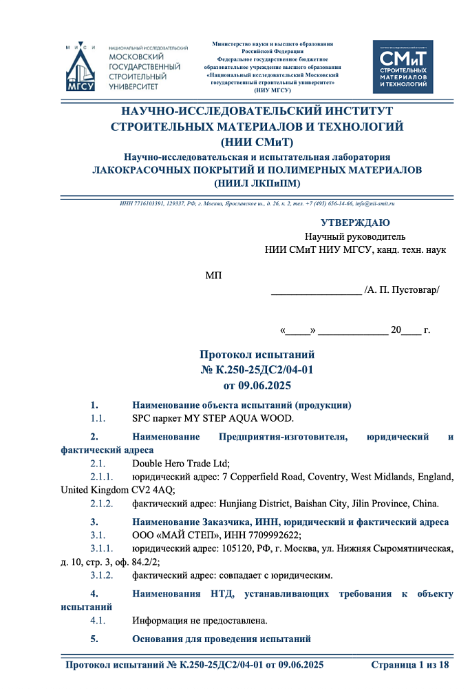 протокол испытаний SPC паркета в НИИ СМиТ